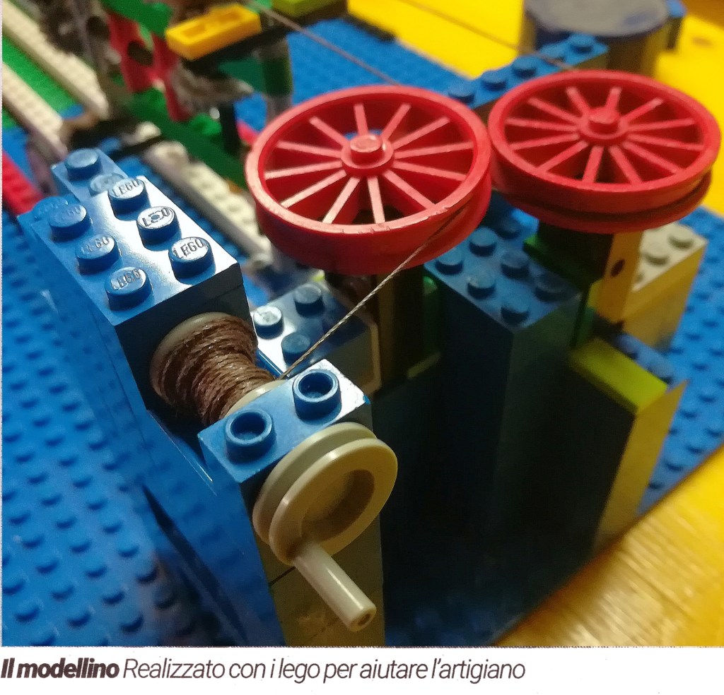 «C’era questo carrettino di cui non sapevo il funzionamento – ammette Moro – e così ho deciso di chiamare il mio amico e assistente Roberto Rossato, grande appassionato di Lego. Co troviamo un pomeriggio e iniziamo a ricostruire una corderia in miniatura partendo dalle foto che ci aveva girato il Rotary: abbiamo ricreato i rocchetti, trafile, il sistema di scorrimento, e infine il famoso carrettino con tutte le carrucole e i meccanismi. Da lì abbiamo capito il suo funzionamento, e siamo riusciti a creare una piccola corda in canapa». Il modellino è piaciuto talmente tanto al Rotary di Venezia che durante il Salone Nautico di quest’anno lo ha presentato assieme al progetto di valorizzazione ai fini espositivi della Corderia di Innio, ipotizzando un suo utilizzo didattico nel museo che si sta progettando.